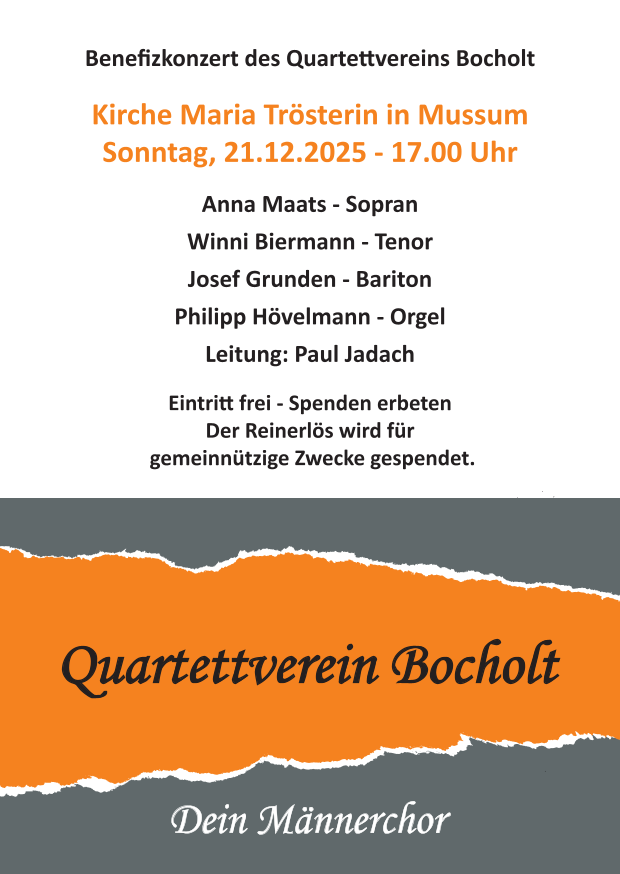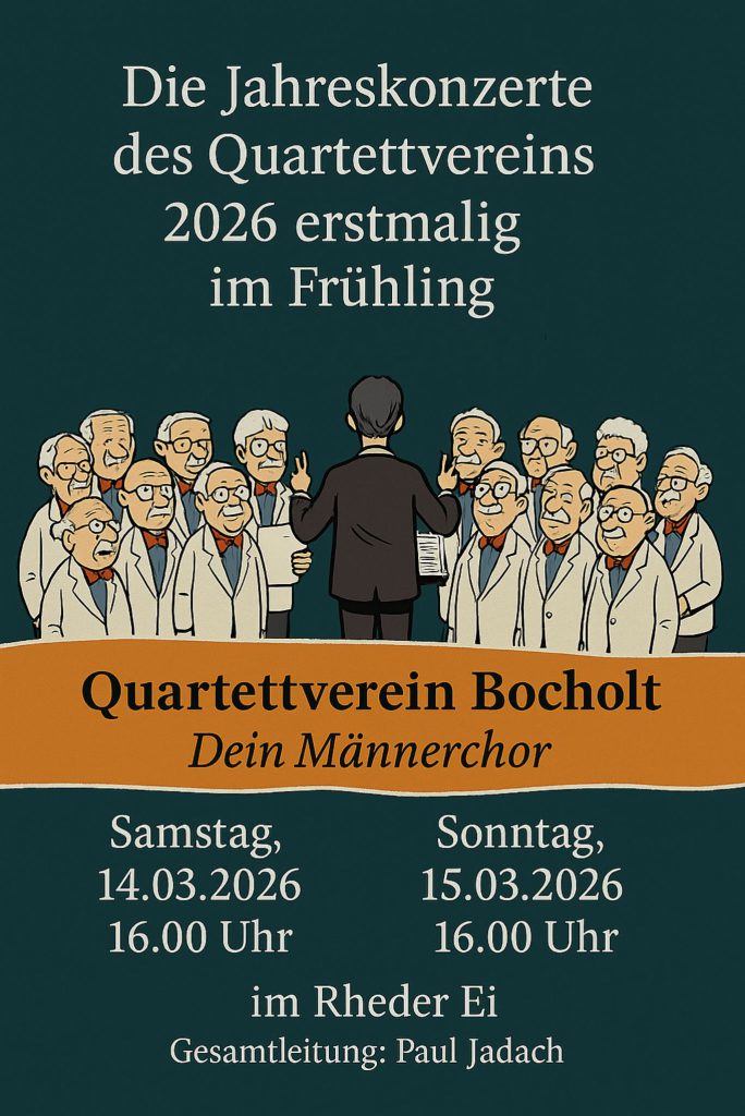 Dann bring Deine Stimme auf die Bühne – mit uns! Der Quartettverein Bocholt ist ein traditionsreicher Männerchor, der seit über 100 Jahren begeistert – mit Herz, Humor und Harmonie.